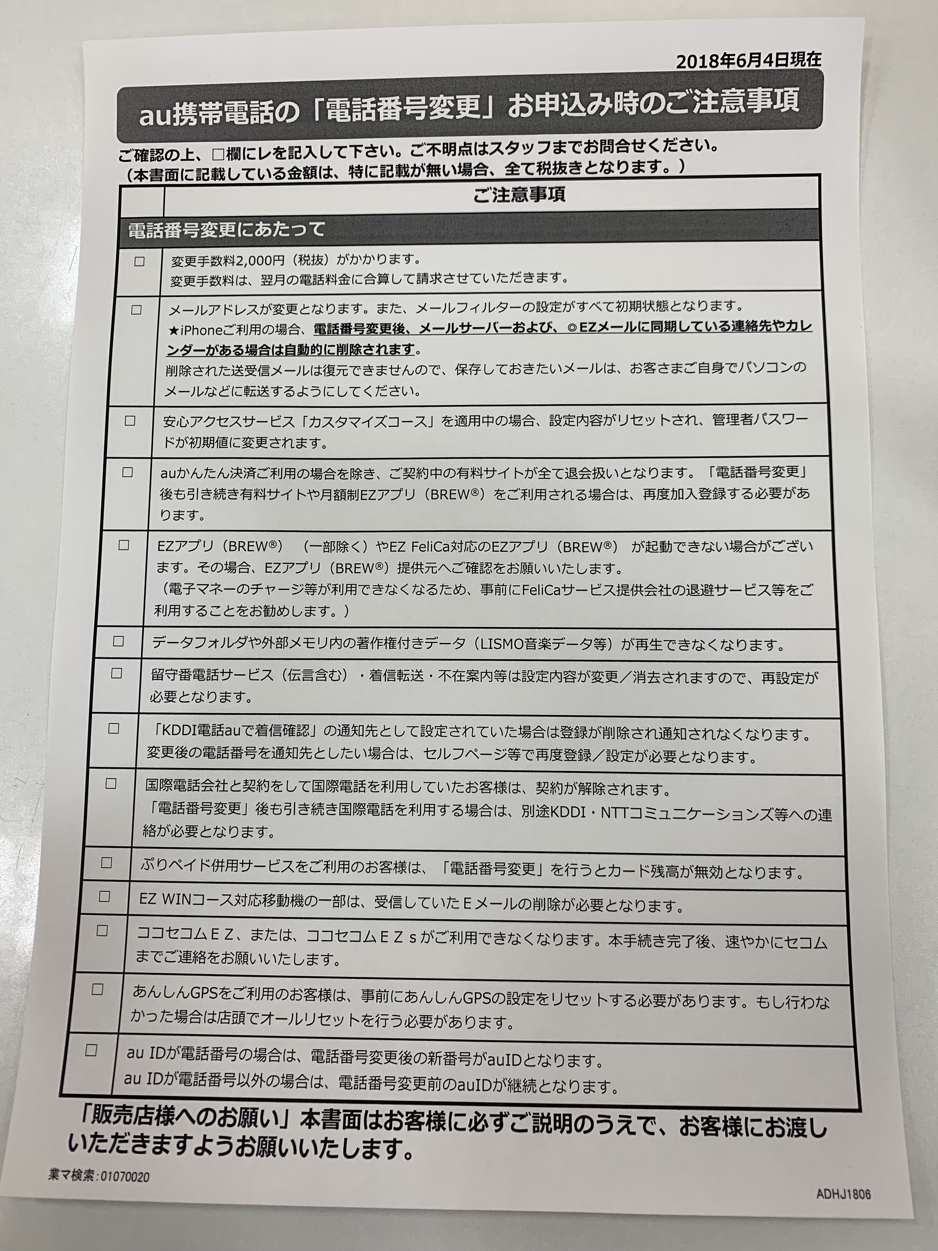 ・W-Phone auの場合は新しい電話番号のSIMカードを発行となりますので、お客様のお手元に到着するまで最短でも一日は電話や通信が使えなくなります)。